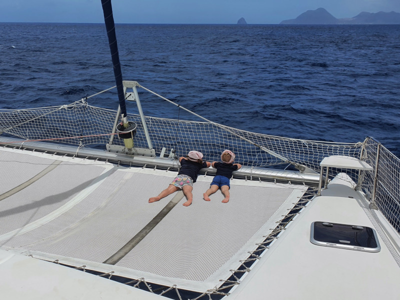 Remedium na chorobę morską jest… katamaran. Duża szerokość i dwa kadłuby powodują, że nie przechyla się tak jak jachty jednokadłubowe, co bardzo poprawia komfort żeglugi, szczególnie w przypadku mniej doświadczonych uczestników. Również gdy stoimy na kotwicy, katamaran nie wpada w boczne bujanie, jak jachty jednokadłubowe, co umożliwia spokojny sen. Dodatkowo nasze rejsy są zaplanowane tak, aby przeloty między wyspami odbywały się w dzień i nie były uciążliwe.